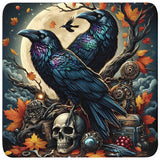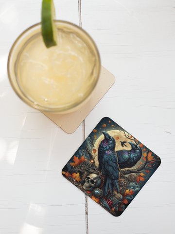 Cork Backed Coaster featuring a stunning Gothic Raven and Skulls design.