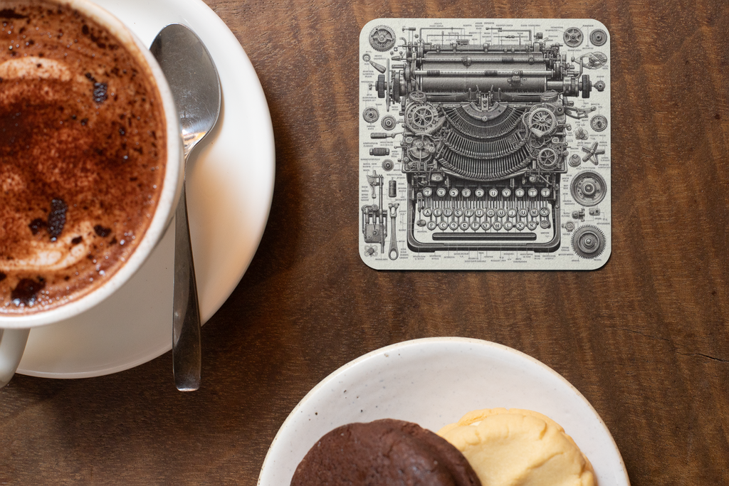 Cork Backed Steampunk Typewriter Coaster.