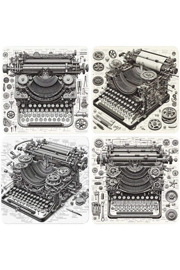 Transport your space to a world of brass, gears, and imagination with the Steampunk Typewriter Coaster Set. This exclusive collection from Oakhart Industries is for the inventor, the writer, and the dreamer who sees more than just a machine in a classic device.