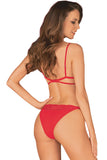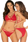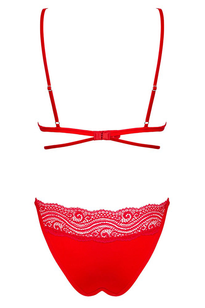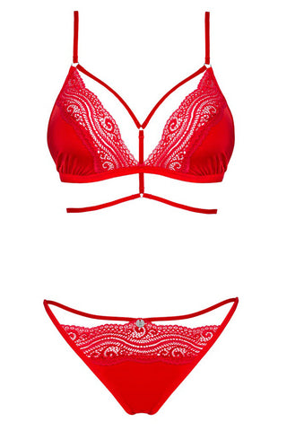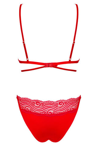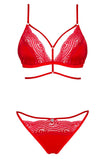 • A Stylish, Fiery Design: The set is crafted from a soft, stretchy material in a vibrant red color that exudes confidence. It features delicate lace-look inserts and is decorated with stylish stretchy straps that beautifully frame the cups for a modern, bold silhouette.