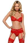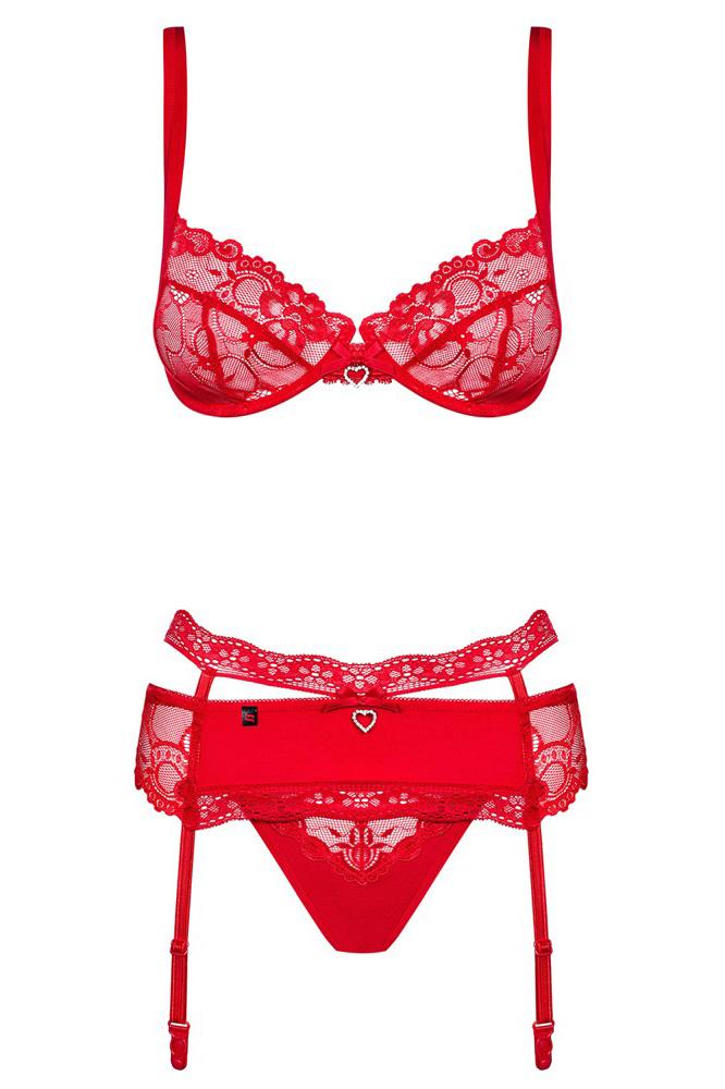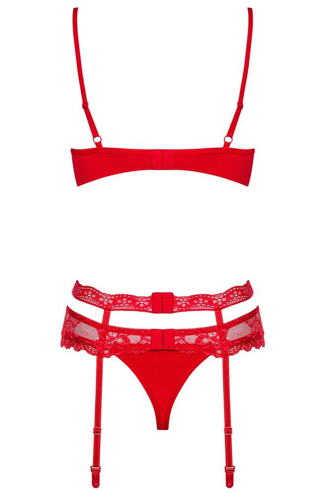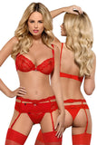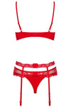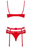 This three-piece set, featuring a bra, garter belt, and a G-string, is a true statement of confident style, combining a passionate red color with a sexy design to add a lot of passion to your love life.