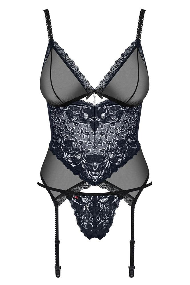 This two-piece set, featuring a transparent basque and a matching string, is a true statement of confident style. Its elegant design and alluring details create a look that is both captivating and incredibly comfortable.