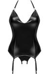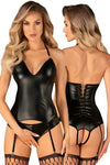 This two-piece set, featuring a corset with removable suspenders and matching briefs, is made to make you feel beautiful and dominant. Its figure-hugging design and intricate details are a testament to quality craftsmanship.