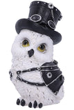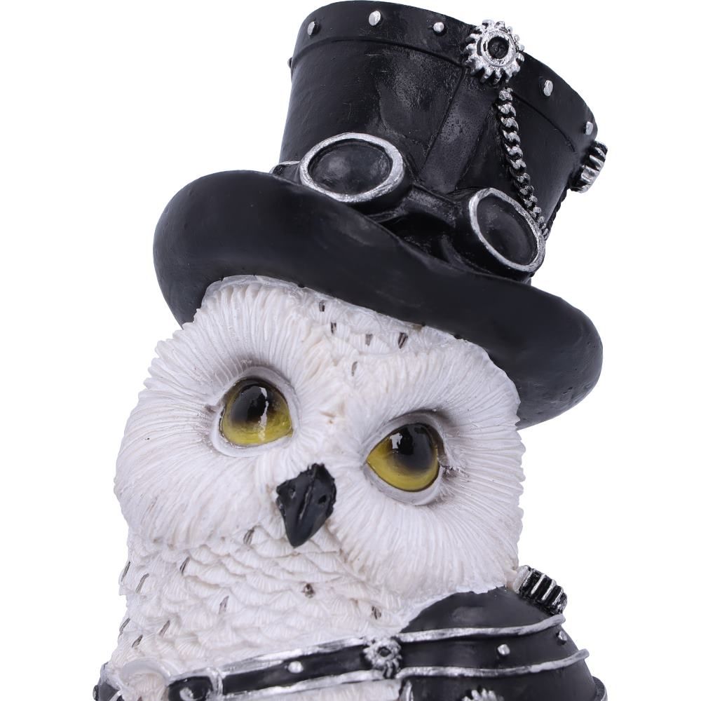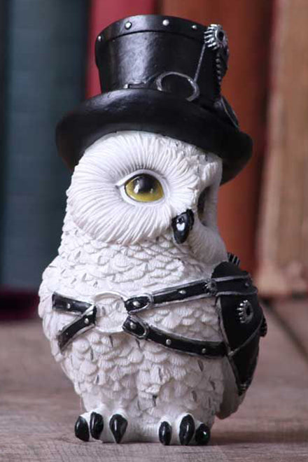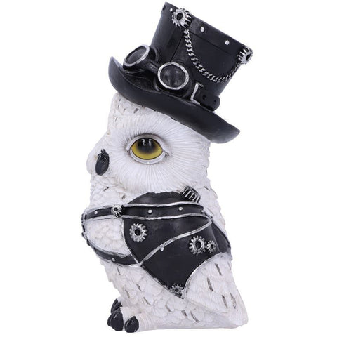 With a leather jacket, top hat, and a pair of goggles the look is complete with a selection of cogs and gears which decorate his outfit. This owl stands wide-eyed staring inquisitively into the distance. Cast in the finest resin before being painstakingly hand-painted.