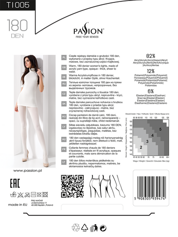 Discover a breath of fresh air with Passion Lingerie's Mint Green Tights TI005. These 180 denier tights offer the perfect blend of warmth, comfort, and style. Crafted from a soft and cozy blend of 82% acrylic, 12% polyamide, and 6% elastane, they provide exceptional insulation without compromising on comfort.