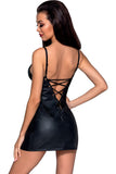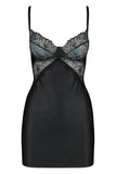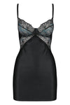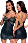 Discover the irresistible allure of the Passion Lingerie Astrida Chemise. This captivating piece is a masterpiece of design, combining the delicate grace of black lace with the striking boldness of green leather accents. The addition of corset lacing elevates this chemise to a whole new level of sophistication and seduction.