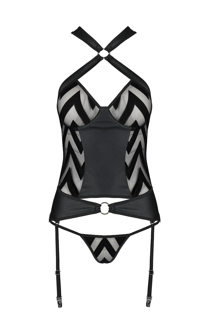 Indulge in the exquisite allure of the Passion Lingerie Hima Corset. This captivating piece is a harmonious blend of classic elegance and contemporary style. Crafted from a luxurious combination of leather and flock, adorned with striking circular details, the Hima Corset is a testament to the brand's commitment to exceptional design.