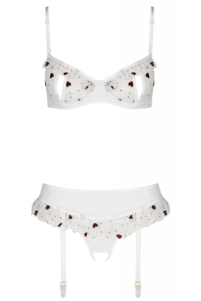 - Lingerie Set: Bra, Garter Belt, Thong