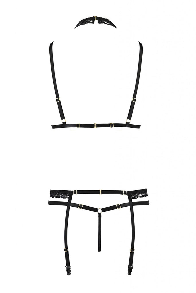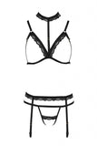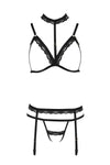 Indulge your senses with the Passion Shelly Set, a captivating ensemble that effortlessly blends classic elegance with contemporary allure. This exquisite collection features a timeless choker, an open bra, a sensual garter belt, and sophisticated thongs, all designed to enhance your natural beauty and ignite desire.