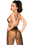 Wear this outfit to engage in the art of seduction! The filigree string body with a geometric-floral pattern impresses with a body-hugging fit and straps crossed on the back. A deep V-neckline puts your cleavage in the limelight. The mesh skirt is attached to the body. It emphasizes your legs with its asymmetrical design. The skirt can be closed at the front with a decorative bow.