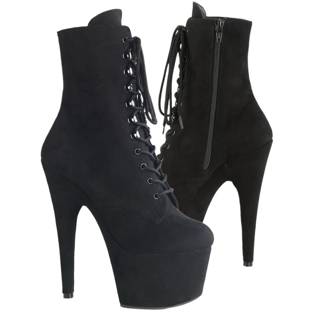 Search Tags: Pleaser Adore-1020FS, Ankle Boots, Black Boots, Faux Suede Boots, Stiletto Heels, Platform Boots, Lace-Up Boots, Pleaser Shoes, Adult Boots.