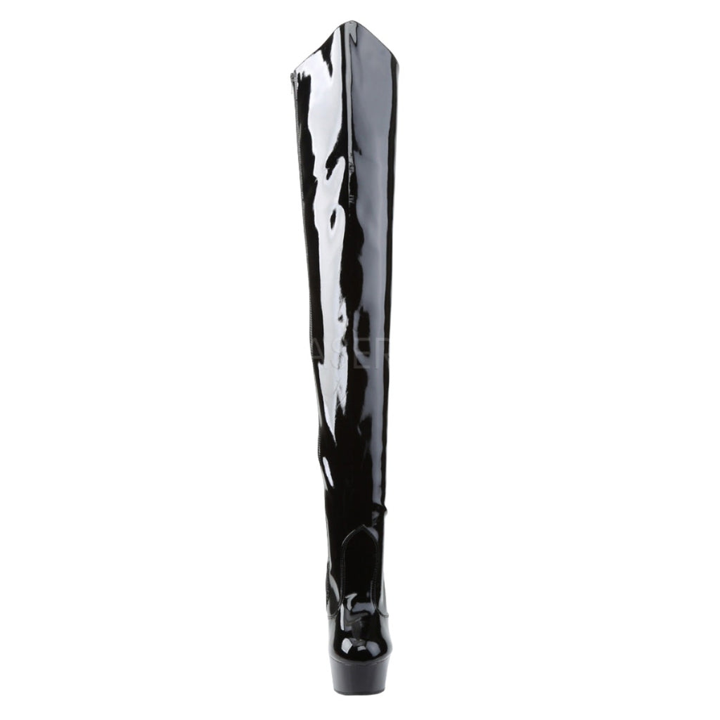 Looking for a pair of boots that are both stylish and surprisingly comfortable? Look no further than the Pleaser Delight-3010 Thigh-High Boots in black patent PVC.