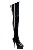 6" (15.2cm) Stiletto Heel, 1 3/4" (4.5cm) Platform Stretch Thigh High Boot, Full Inner Side Zipper.