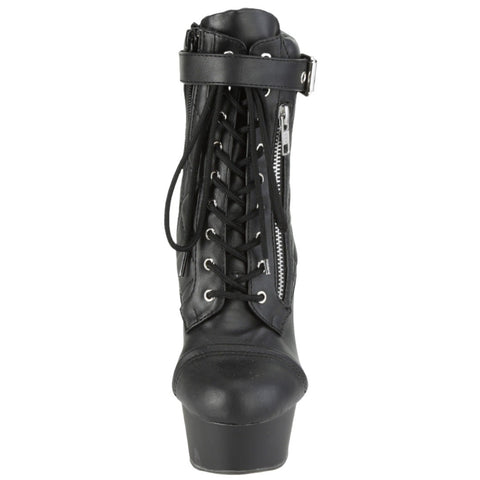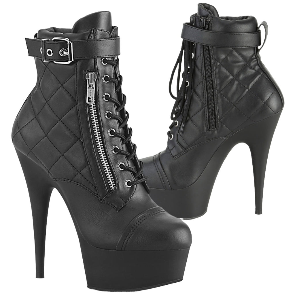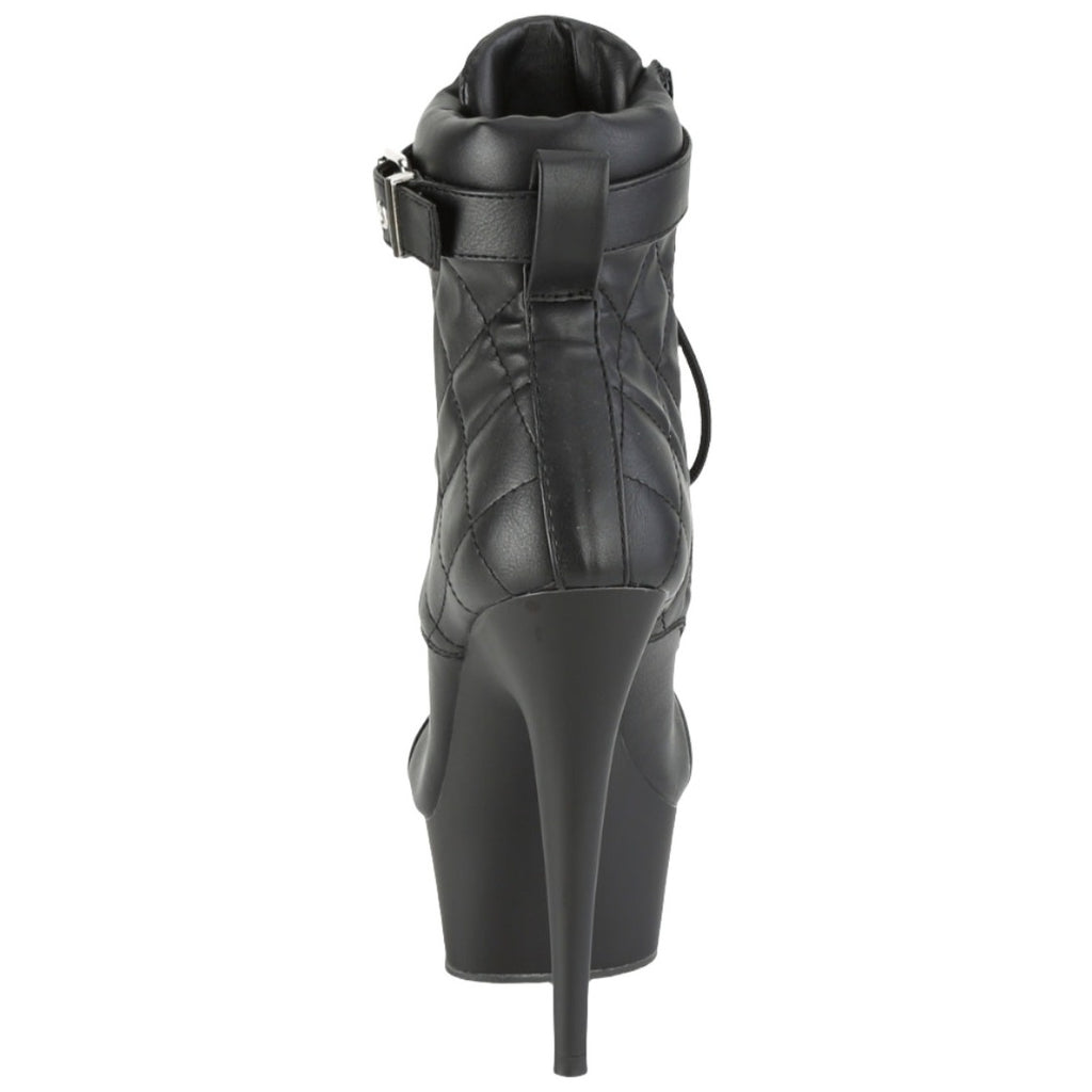 Pleaser DELIGHT-600-05 Black Faux Leather Ankle Boots - Edgy Elegance