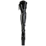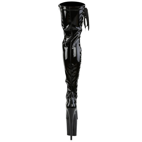 Calling all trendsetters and fashionistas with a flair for the dramatic! The Pleaser Flamingo-3050 boots are here to elevate your leg game and inject a dose of undeniable glamour into your wardrobe. This striking design features a sky-high stiletto heel and platform sole, all encased in sleek black patent PVC, making them the perfect choice for a night out on the town, adding a touch of edge to your everyday outfit, or simply turning heads wherever you go.
