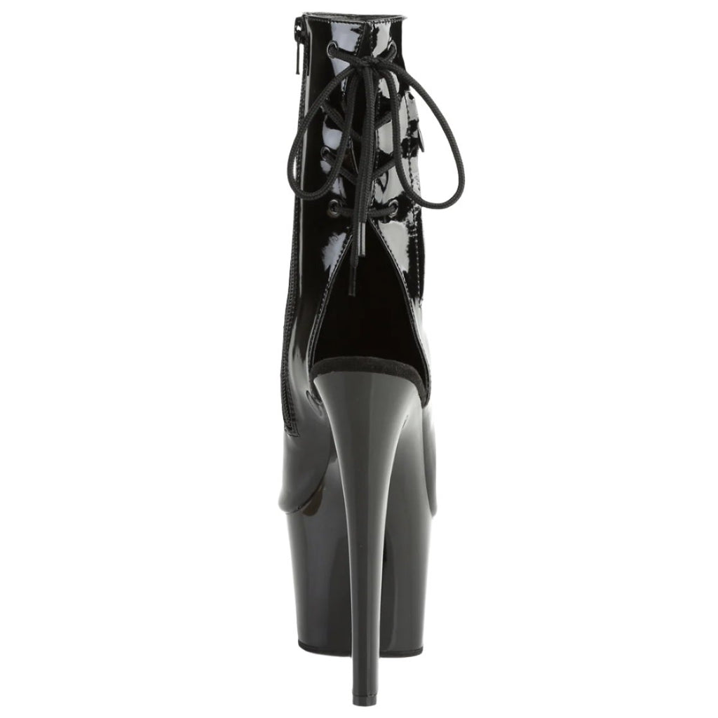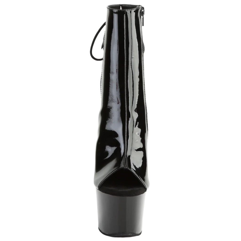 #PleaserShoes #SKY1018 #AnkleBoots #PlatformBoots #BlackPatent #OpenToeHeel #LaceUpBoots #Glamour #Confidence #DaringStyle