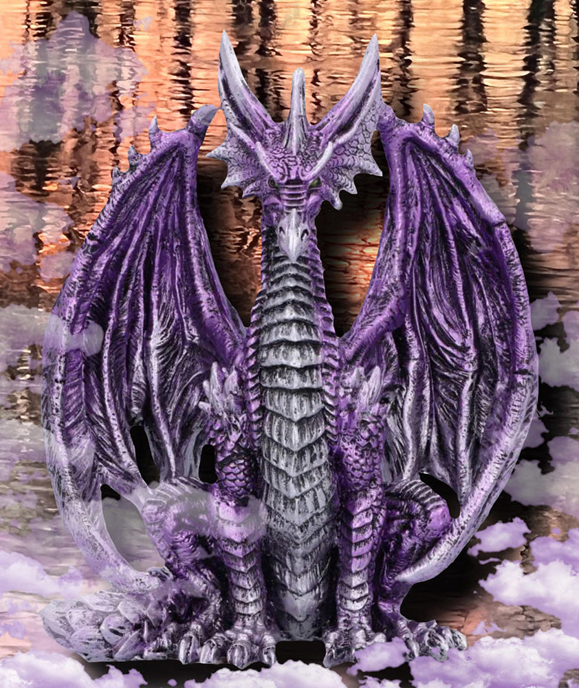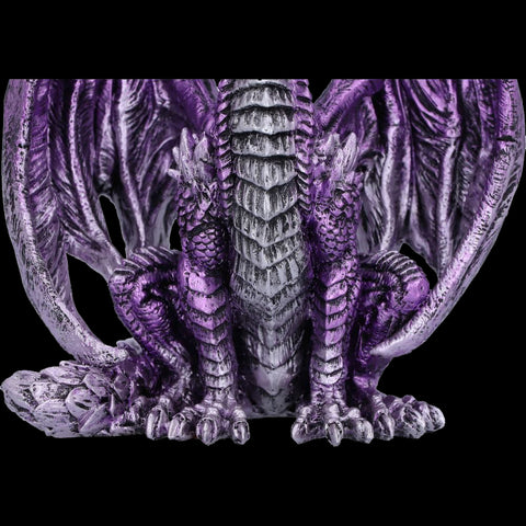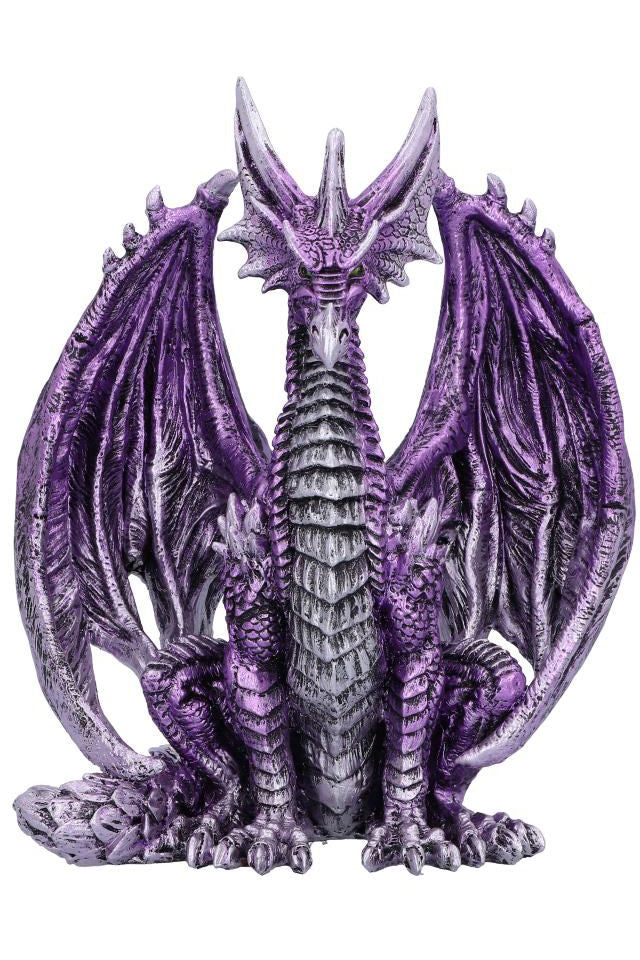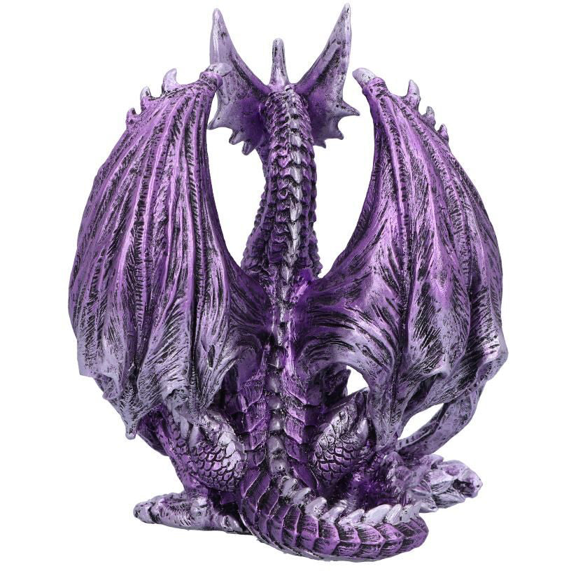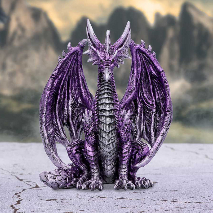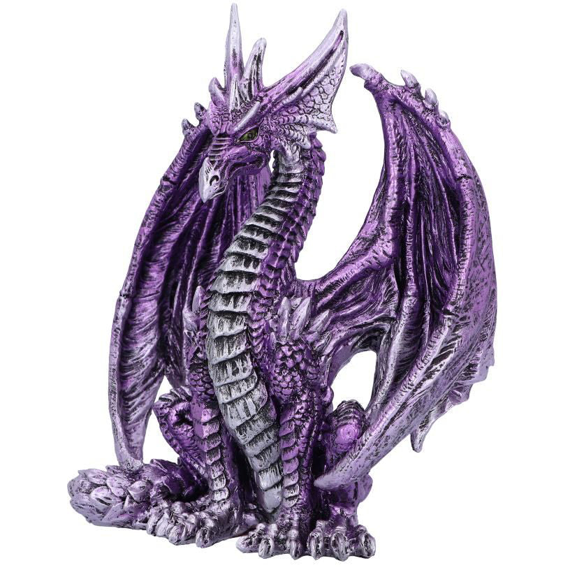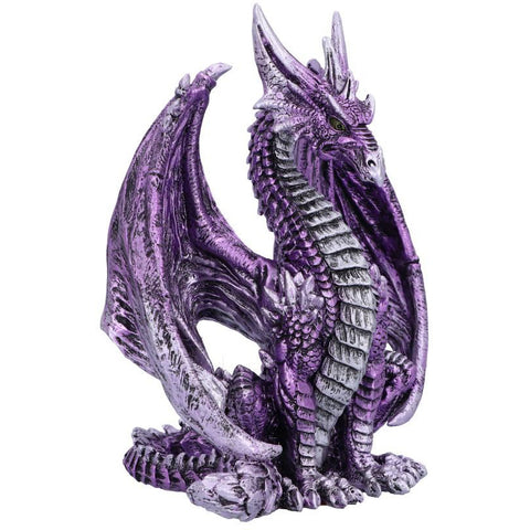 This majestic creature crouches low, wings dominating its back and metallic purple scales shimmering in the light. They wait, guarding their surroundings waiting to battle any intruders. Cast in the finest resin before being hand-painted, this Porfirio will make the perfect addition to any dragon or fantasy collection.