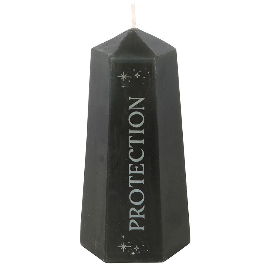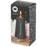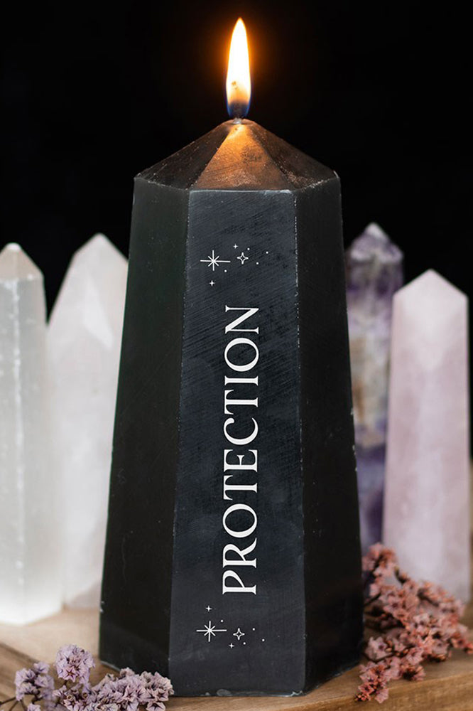Repel unwanted energies and promote inner clarity with this Protection Crystal Candle. Shaped like a black crystal tower, this candle offers up to 30 hours of burn time to gradually reveal a rough obsidian stone hidden at the bottom. Perfect for setting intentions and manifesting your dreams, it's the ideal accessory to complement your sacred space. Unscented paraffin wax. Burn on a protected surface.
