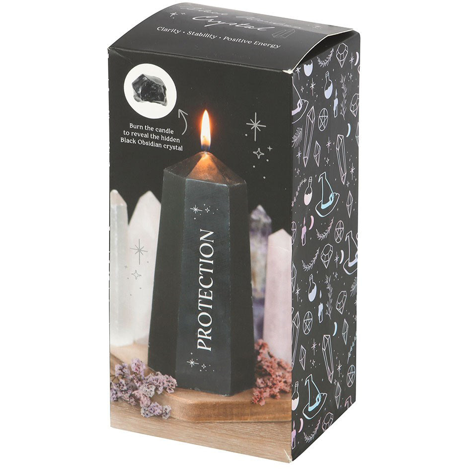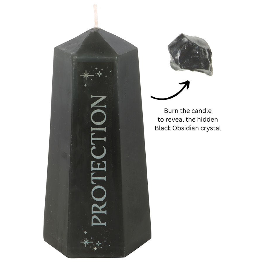 Protection Crystal Candle with Rough Black Obsidian.