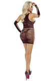 A ridiculously sexy fishnet mini- dress styled in a design which clings to the body with an open front that is held together by a criss-cross design. It also has a beautiful, criss-crossed pattern down the long sleeves, and a pretty butterfly pattern at the front of the crotch and on the rear. This design arrives in a neatly presented box perfect for a gift or just for personal indulgence!