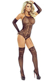 A super-naughty, semi-transparent fishnet bodystocking with detailed patterning down the middle on the front and the back. Features include lace gloves and an integral stockings design. The bodystocking shows off the top of the legs, with lace patterning on the stocking tops. This raunchy design comes neatly boxed perfect for a gift or just for personal indulgence!