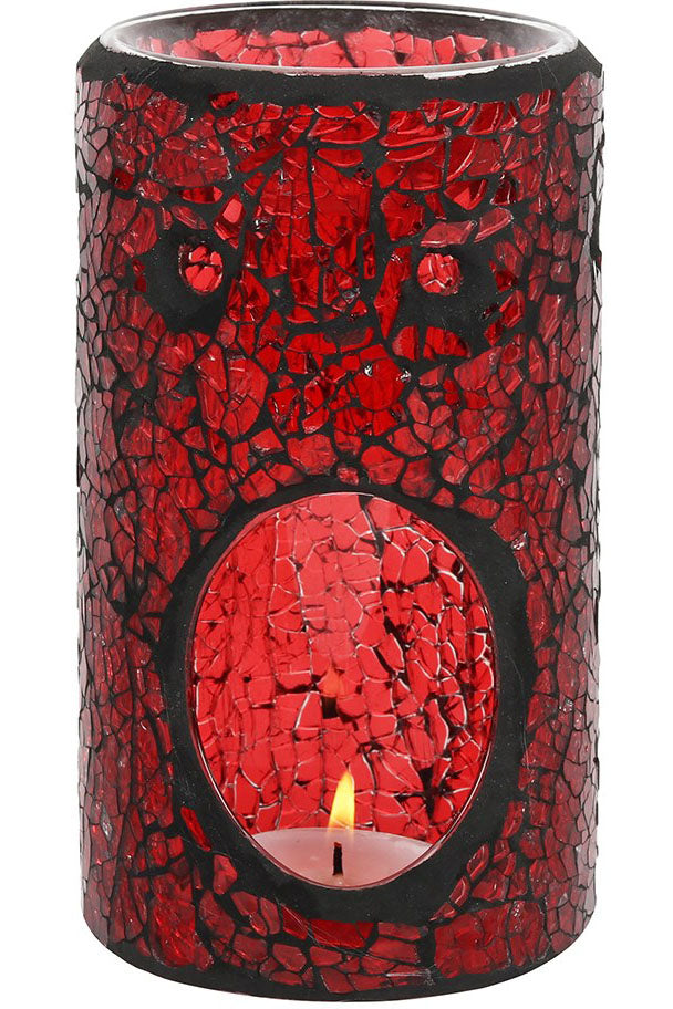 Keywords: Red Crackle Glass Oil Burner, Oil Burner, Wax Melt Burner, Glass Oil Burner, Essential Oil Diffuser, Home Fragrance, Aromatherapy, Pillar Burner, Modern Oil Burner, Matching Candle Holders, Home Decor