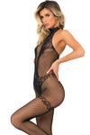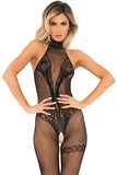 • Elegant lace choker neck piece gives the exotic illusion you are wearing a skimpy crotchless lace teddy and single garter over your fishnet bodystocking.