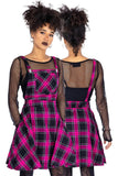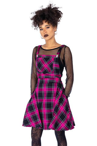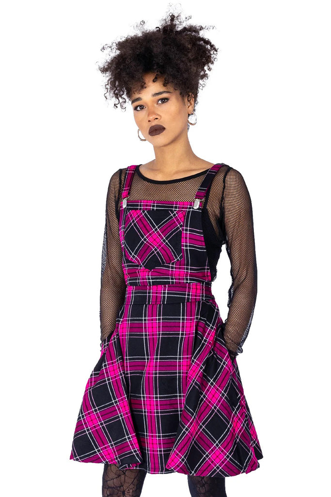 Embrace your inner rebel with the Rockabella Dark Pink Maeve Pinafore Dress. Order yours today and unleash your punk spirit.