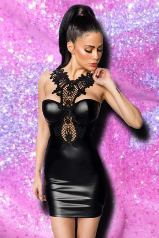 Saresia Wetlook and Lace Dress - Edgy Elegance