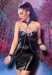 Search Tags: wetlook dress, mini dress, sexy dress, party dress, clubwear, choker, heart cutout, eyelets, chains, wristbands, women's clothing, seductive, glamorous, stylish, comfortable, elastic material, polyester, elastane, Saresia.