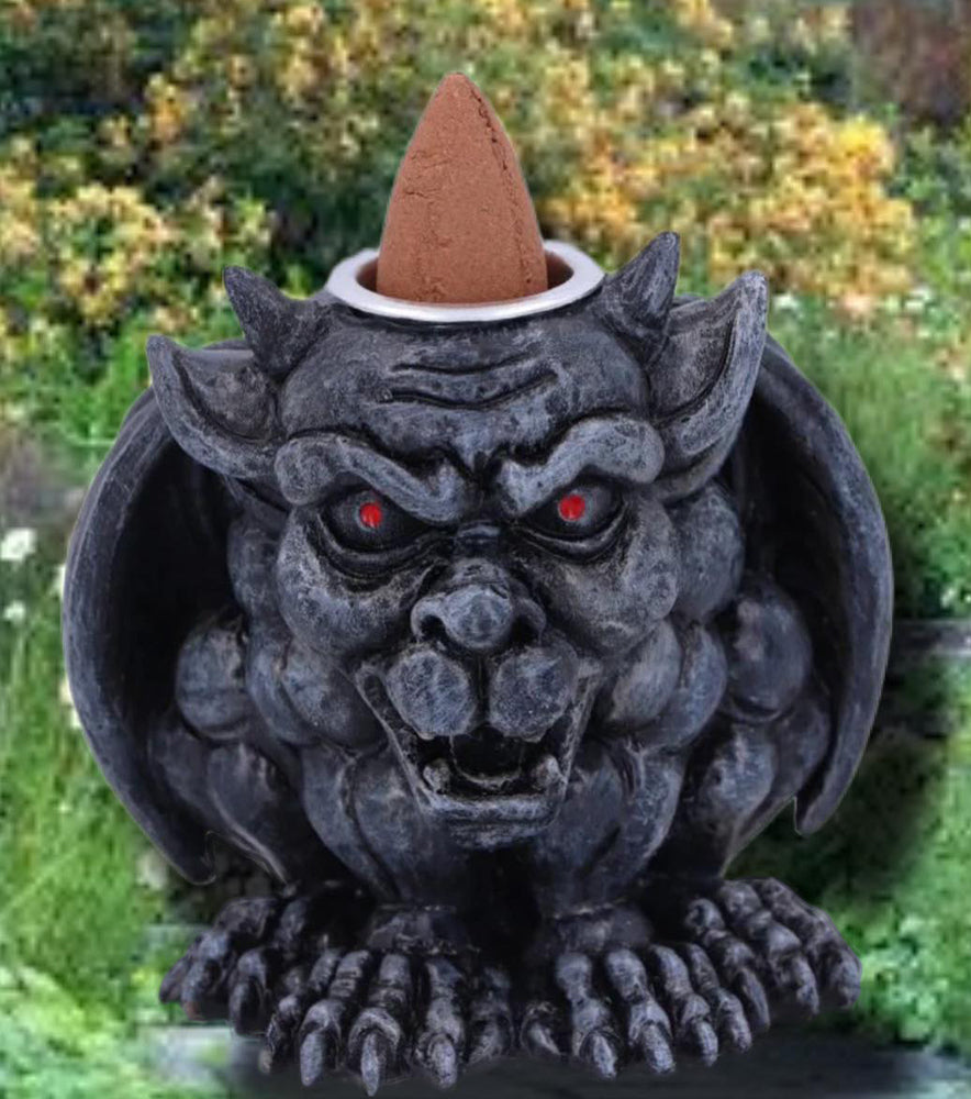 This Gargoyle sits crouched, devilish eyes staring into your soul and mouth open wide in a threatening manner. On top of the head is a small tray, perfect for burning our back flow incense cones. Cast in the finest resin before being expertly hand-painted, this figurine would make a great addition to any gothic or horror collection.