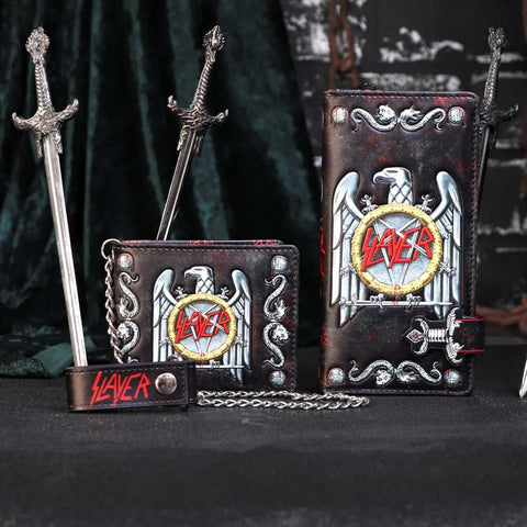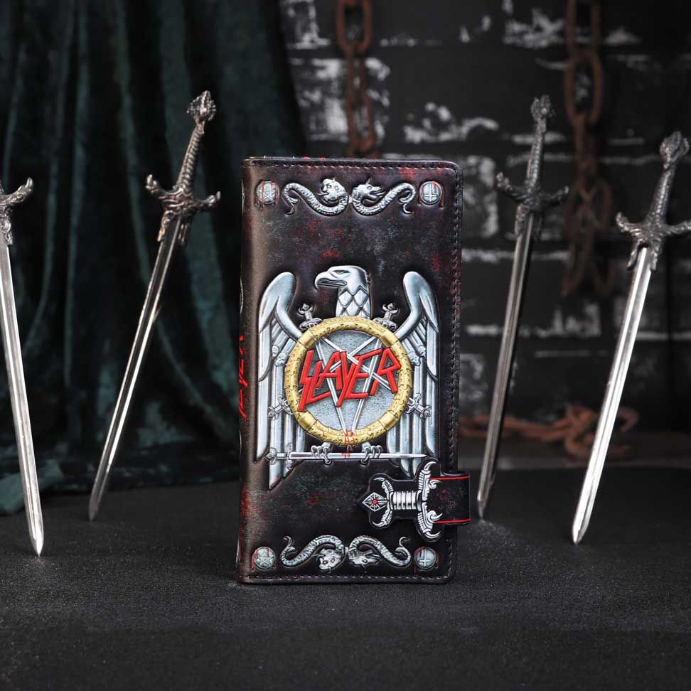 Pay homage to the thrash metal gods with this officially licensed embossed purse. This purse is emblazoned with the band’s distinctive eagle and swords logo which instantly brings to mind Slayer’s fast tremolo picking, double bass drumming and shouted vocals. Perfect for keeping your money safe when you're headbanging!