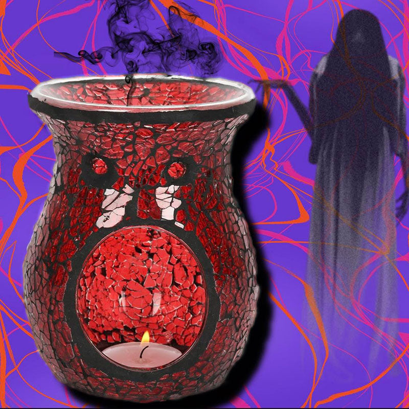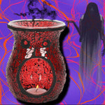 Beautiful small oil burner with a red crackle effect. May also be used as a wax melt burner. This popular item is also available in other oil burner designs and as matching candle holders.