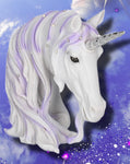 • White Unicorn laced with subtle purple strands of hair and crystal jewels.