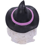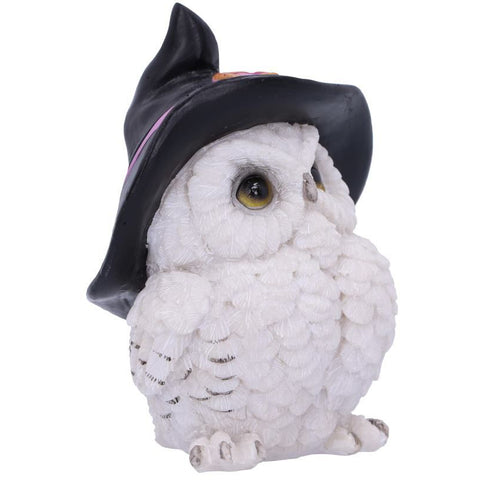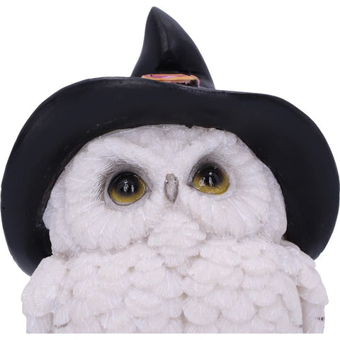 Our snowy feathered friend sits proudly with a pointed black witches hat on top of their head. Cast in the finest resin before being expertly hand-painted, this Owl will sit perfectly on any altar, bookshelf or table.