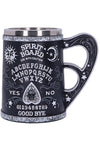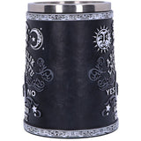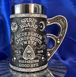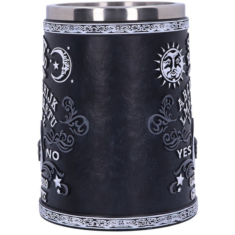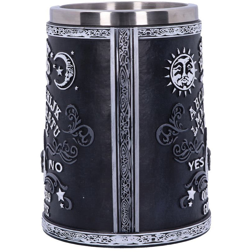 Spirit boards have long been one of the most powerful occult tools there is. Encompassing the black Tankard is our own spirit board design, decorated with white baroque detailing on the handle base and rim. In the center the alphabet is marked out in an arc. The design also includes numbers 0 to 9 and the words YES and NO, as well as a warning to use with caution – the power of the spirit world is not something to take lightly. Cast in the finest resin before being painstakingly hand-painted, this Tankard will make the perfect tabletop accompaniment to any séance.
