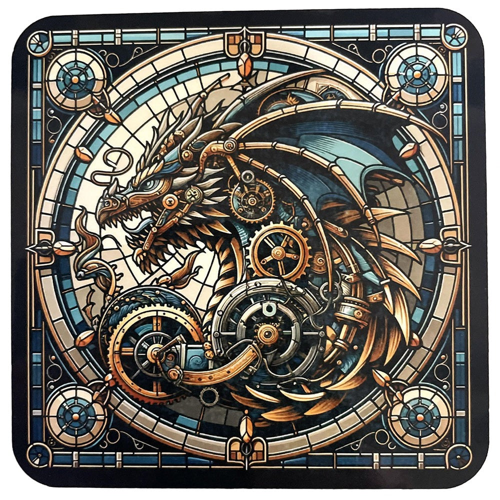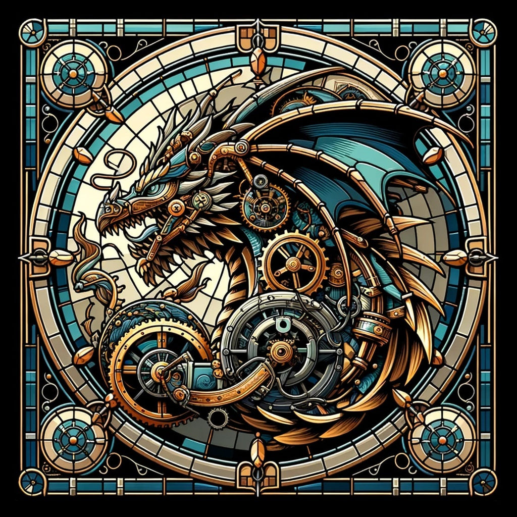 - Steampunk blue dragon stained glass design
