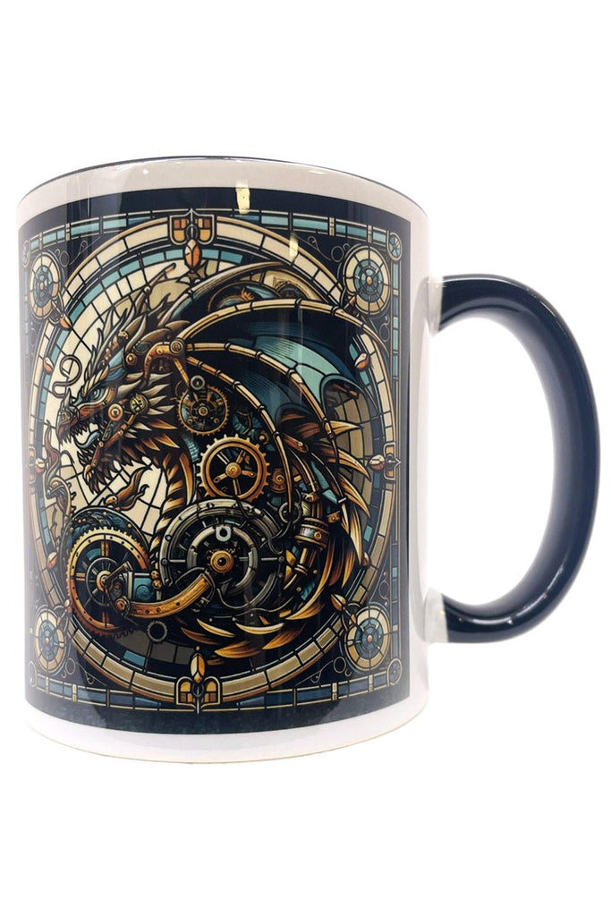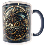 Embark on a thrilling adventure with the Oakhart Industries Steampunk Blue Dragon Mug. This extraordinary ceramic mug is a testament to the brand's dedication to blending artistry with functionality. The design, reminiscent of a majestic blue dragon captured in a stained glass window, transports you to a world of steampunk wonder with every sip.