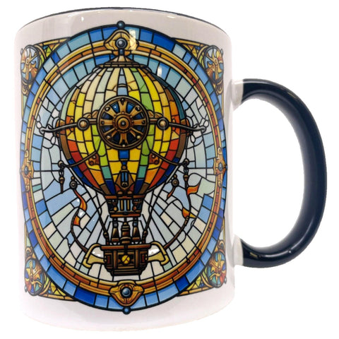 Crafted with meticulous attention to detail, the mug features a captivating airship illustration that is both intricate and inspiring. The sleek black interior and handle provide a striking contrast to the vibrant colors of the airship, creating a visually stunning piece. Designed to be both functional and aesthetically pleasing, the Steampunk Classic Air Balloon Mug is the perfect size to hold your favorite beverage, whether it's a comforting cup of tea or a revitalizing coffee. Its sturdy construction ensures durability, while its elegant shape is a delight to hold.