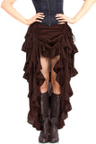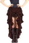 Steampunk Show Girl Skirt is made using soft & durable Rayon Fabric. The skirt has Four Tiers of Ruffles with adjustable length in front. The skirt can be worn down for Victorian styling, up on one side for Gypsy styling or front tied up for vintage burlesque looks. Waist has been elasticized for comfortable wearing.