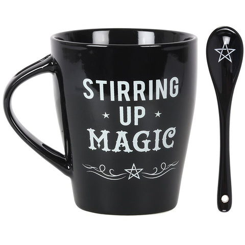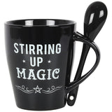 This bewitching mug and spoon set will add a pinch of magic to every cuppa. Style features 'Stirring Up Magic' text and matching teaspoon with a pentagram design that fits perfectly in a slotted handle.