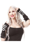 Embrace your inner rebel with the Heartless Stripe Strap Armwarmers. Order yours today and complete your edgy look.