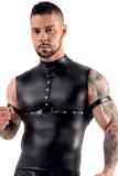 Exclusive, captivating design! Top from Svenjoyment Bondage made out of trendy, black matte look material with a harness (not removable) with studs on it. The harness has a ring at either side for the included arm loops that will restrain the arms. The matte look arm loops can be adjusted because they have hook and loop fasteners.