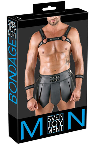 Step into a world of power and fantasy with the Svenjoyment Gladiator Set. This captivating three-piece bondage-inspired set combines a striking matte-look aesthetic with a comfortable and adjustable fit, making it perfect for a dramatic and unforgettable experience.