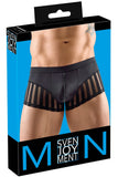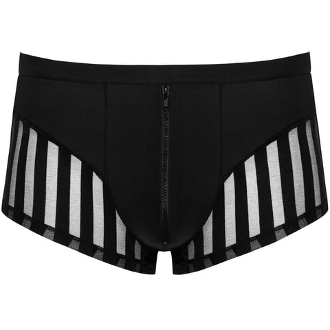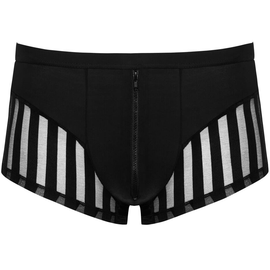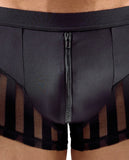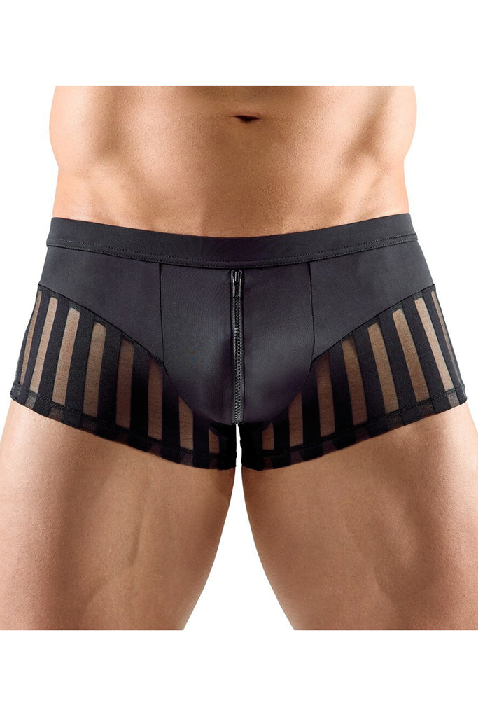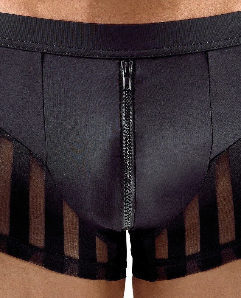 Stylish pants with an erotic and practical zip! The emphasising pants from Svenjoyment are made out of soft black microfibre and they also have transparent stripe inserts at the front and the sides. With a padded front zip at the front. They are stretchy for an extremely comfortable fit.