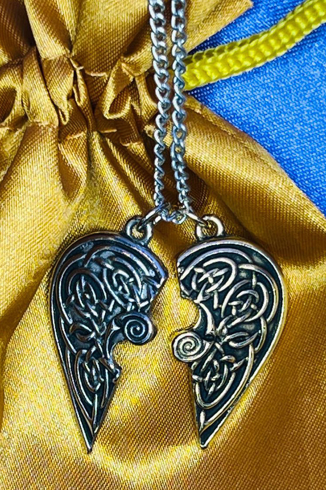 The Lost Treasures of Albion Tristan and Iseult Love Token Pair Gothic Celtic Heart Pendant.