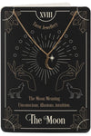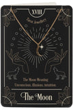 A mystical gold-tone crescent moon necklace beautifully presented on a matching greeting card perfect for gifting. Inspired by the art of tarot reading. 22cm chain with lobster clasp closure. Nickel-free stainless steel. Includes metallic envelope. Card left blank inside.