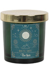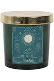Inspired by traditional tarot card designs, this lidded candle features a stunning sun tarot design and comes in a lovely white sage fragrance. Paraffin wax. Approximate burn time of 25 hours. Please practice caution when burning and never leave lit candle unattended.