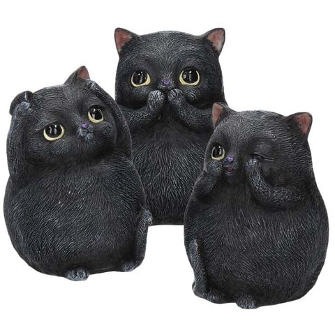 These rotund cats come from our own fantastic in-house design team. Sitting side by side, these three wise kitties look up with adorable eyes with purple heart-shaped noses. One clasps their paws to their mouth, one blocks their ears, and one covers their eyes, sneaking a peek regardless. Cast in the finest resin before being lovingly hand-painted, these adorable animals are the perfect illustration of Confucius’ famous maxim: “See no evil, hear no evil, speak no evil”