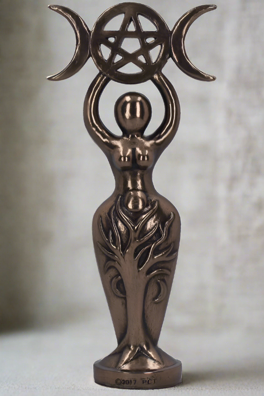 Triple Goddess Figurine Bronzed Wiccan Idol Ornament.